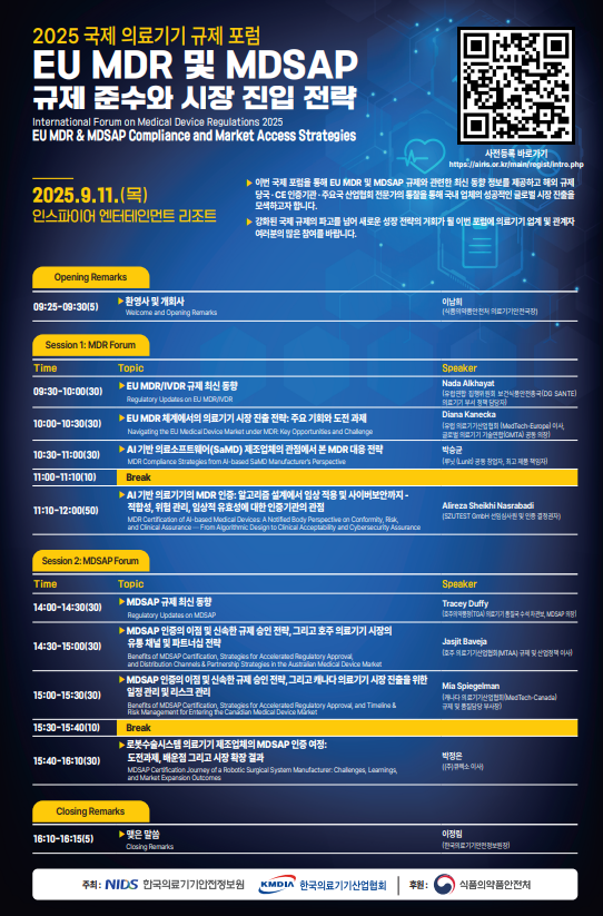 - 행사명: 2025 국제 의료기기 규제 포럼